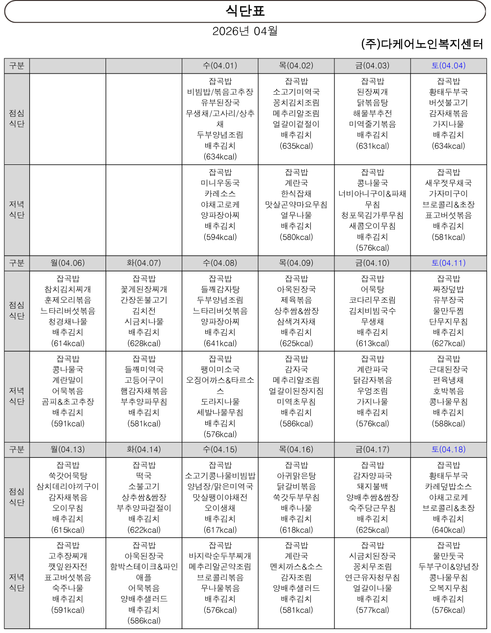 2026³â 4¿ù ½Ä´ÜÇ¥