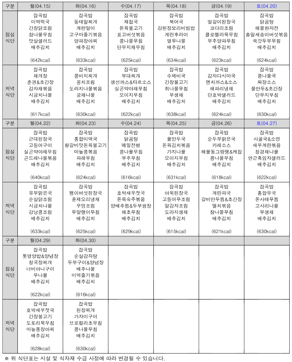 2024³â 4¿ù ½Ä´ÜÇ¥