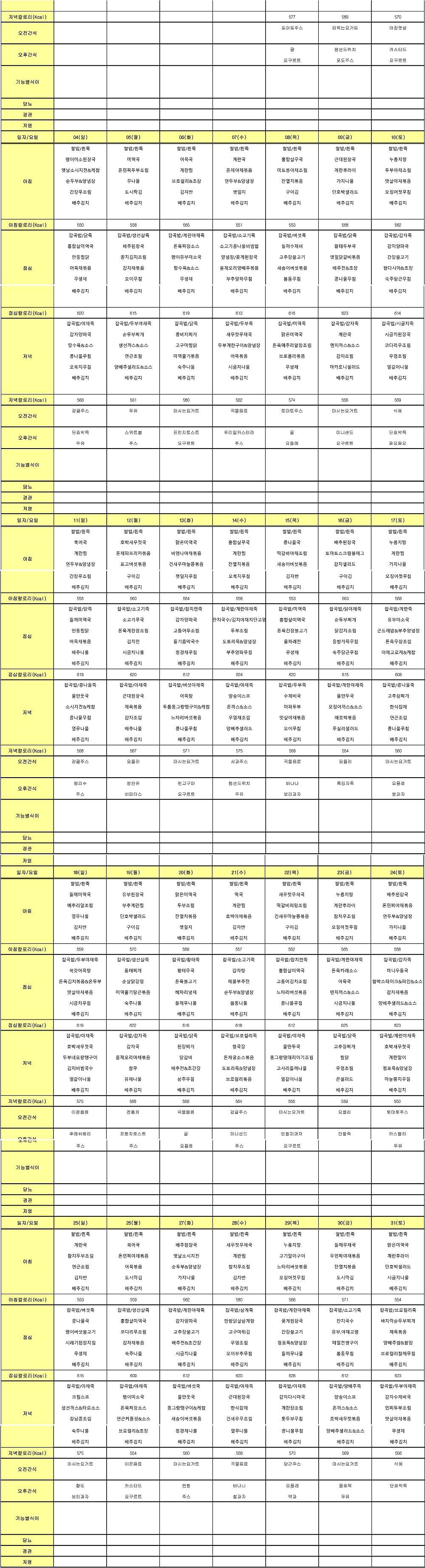 ¿ù°£½Ä´ÜÇ¥